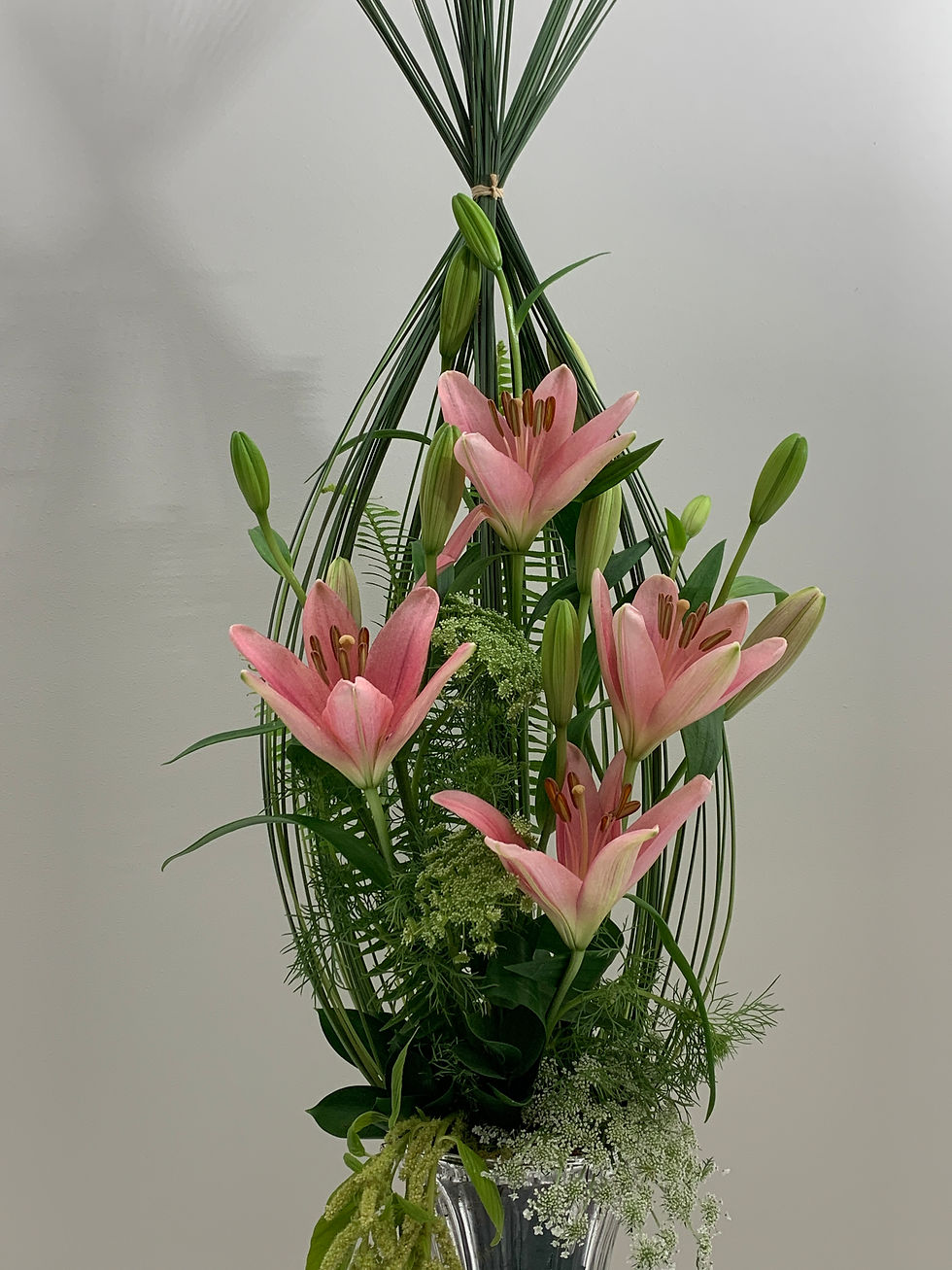 Unlike typical florists, we incorporate unique materials like moss, bamboo, and more to craft intricate frameworks that define our distinctive designs. This meticulous process ensures each arrangement is one-of-a-kind. Paired with the freshest flowers and greenery, purchased on the day of pickup or delivery, our creations are truly exceptional.